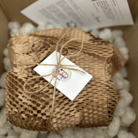 V mých balíčcích jsou výrobky baleny do papíru a výplň je z kukuřičného škrobu. Výplň tedy neházejte do koše ani plastu, ale buď jí můžete použít dále anebo rozpustit ve vodě. Je i kompostovatelná. Lepící pásku rovněž používám papírovou.