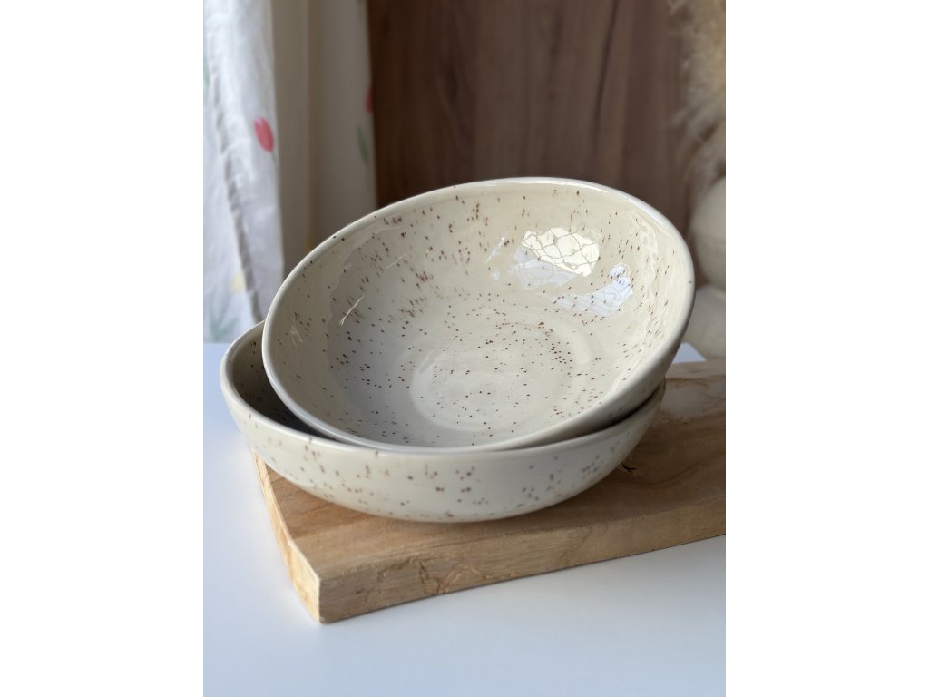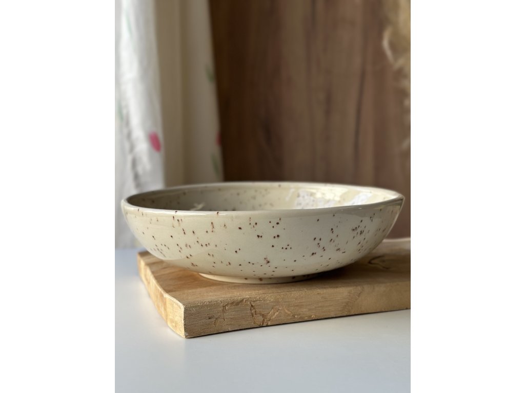 Velký hluboký talíř z kameniny. Talíř je vyrobený ručně pomocí licí techniky.