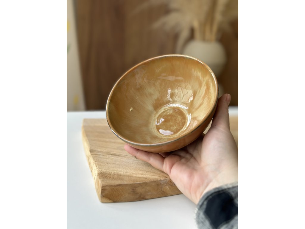 Ručně vyrobená miska z kameniny, která vznikla litím do sádrové formy.