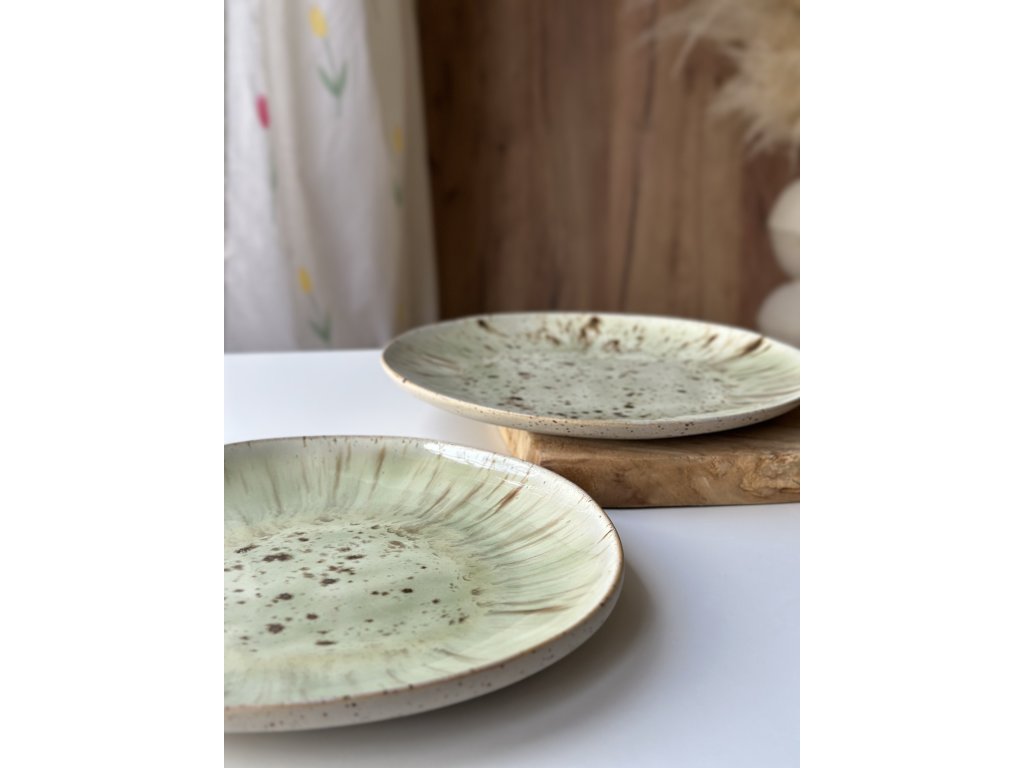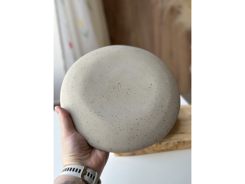 Modelovaný talíř z kameniny. Talíř je vyrobený ručně, a proto je nepravidelného tvaru.