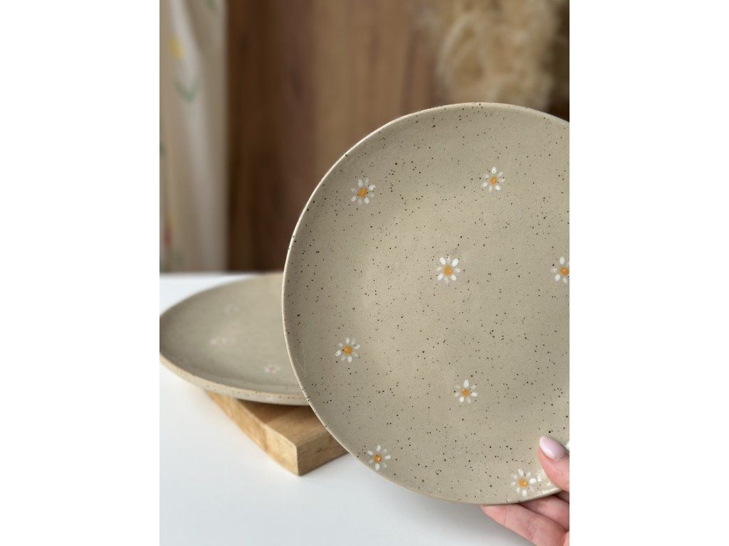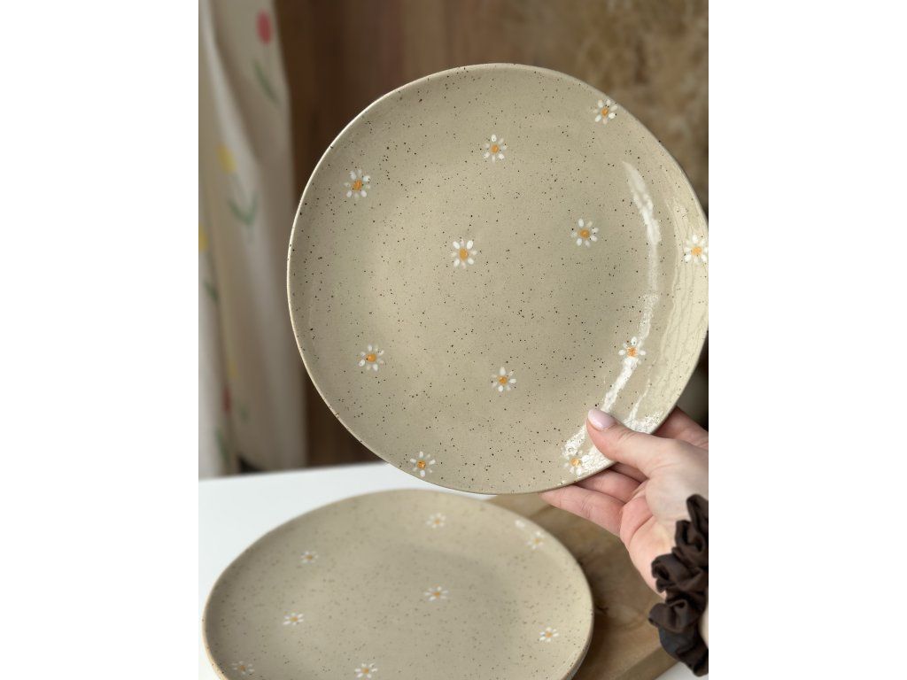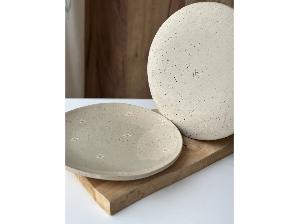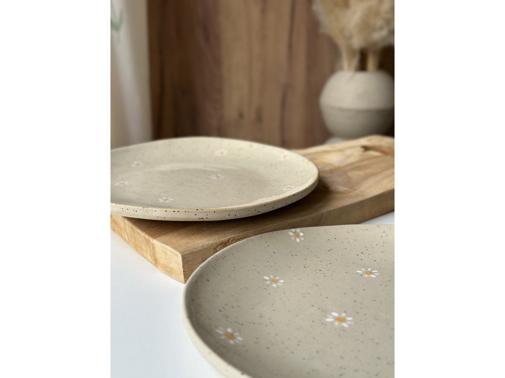 Modelovaný talíř z kameniny. Talíř je vyrobený ručně, a proto je nepravidelného tvaru.